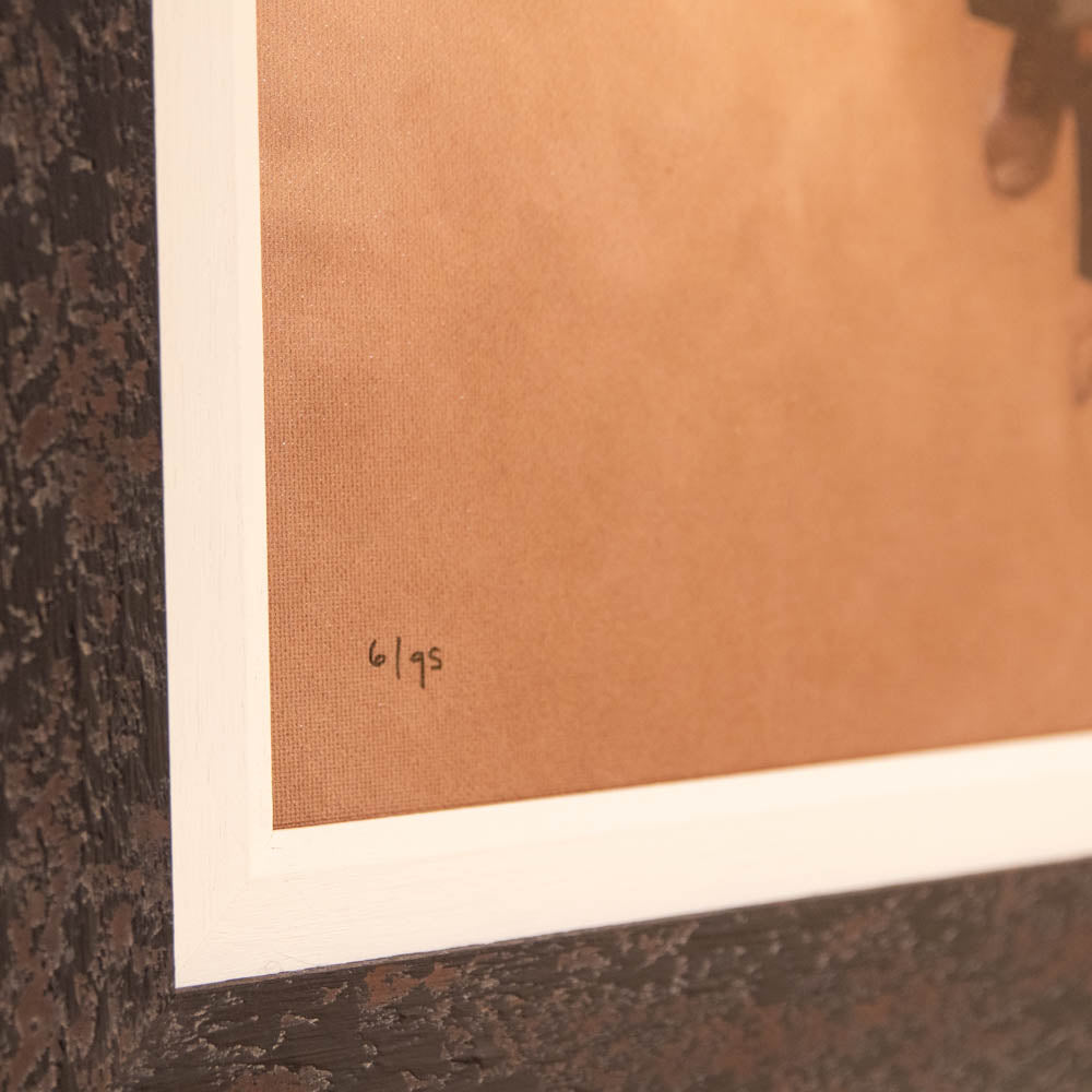 Our packaging wizards go to great lengths to make sure your artwork arrives in perfect condition. Framed, pieces are wrapped in impact-resistant edge protection foam, which is 100% recyclable and chemically neutral. Glazed pieces, are protected and secured using residue-free masking tape.