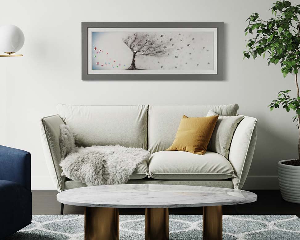 You can request a personalised video, or upload a photograph of your wall and we will superimpose the artwork into your home so you can see the artwork you love in situ, all for free!