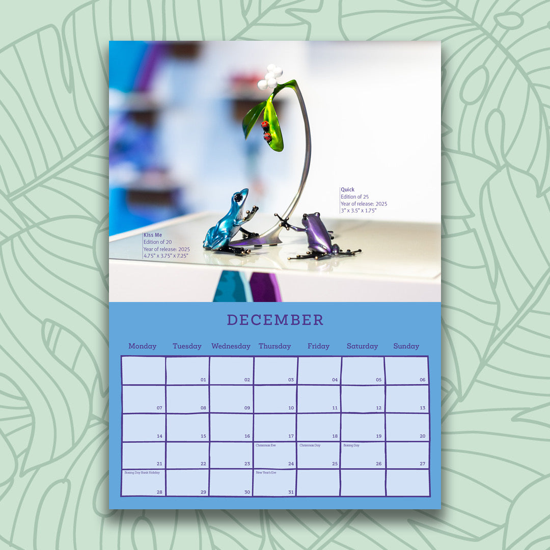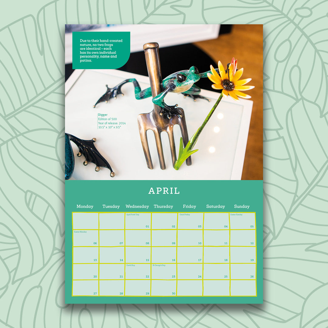 For only £25, enjoy 12 months of the Frogman; frog images, Frogman fun facts and a beautiful way to organise your 2026.