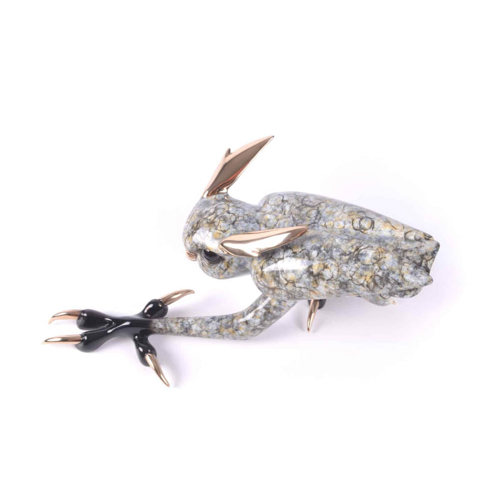 Tim Cotterill takes a flight of fancy, venturing into fantasy art with his latest release. Zeus, a mythical, owlish creature, has all the hallmarks of this popular-culture genre; the aggressive stance, menacing talons, a distinctive, densely marbled patina with high-polished bronze head-gear- and just a touch of whimsy.