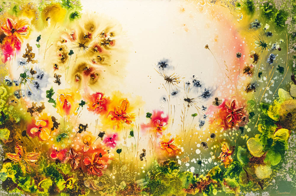 Inspired by the beauty of nature, Tina Earnshaw’s original works are thick with colour and textures. The artist creates mystical botanical pieces using acrylics, watercolours, oils and metallic leaf. In each one, a fairy is hidden, can you find it?